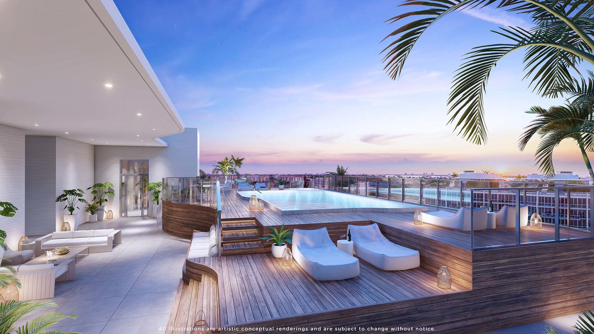 Alana stands at 7 floors with units ranging from 2 bedrooms to expansive 3 bedroom residences. These flow-through residences each have a unique view whether its of the adjacent islands or the Intracoastal. Surrounded by the relaxing blue waters of Miami, residents feel like they are in their own private tropical paradise. Each residence features an open-concept contemporary floor plan with intricate modern finishes. Residents can experience an amenity rich lifestyle curated for relaxation, recreation and inspiration. With it's own rooftop amenity deck featuring a resort style pool, outdoor fitness area, and indoor lobby level amenities - residents have lots of things to enjoy in their building.