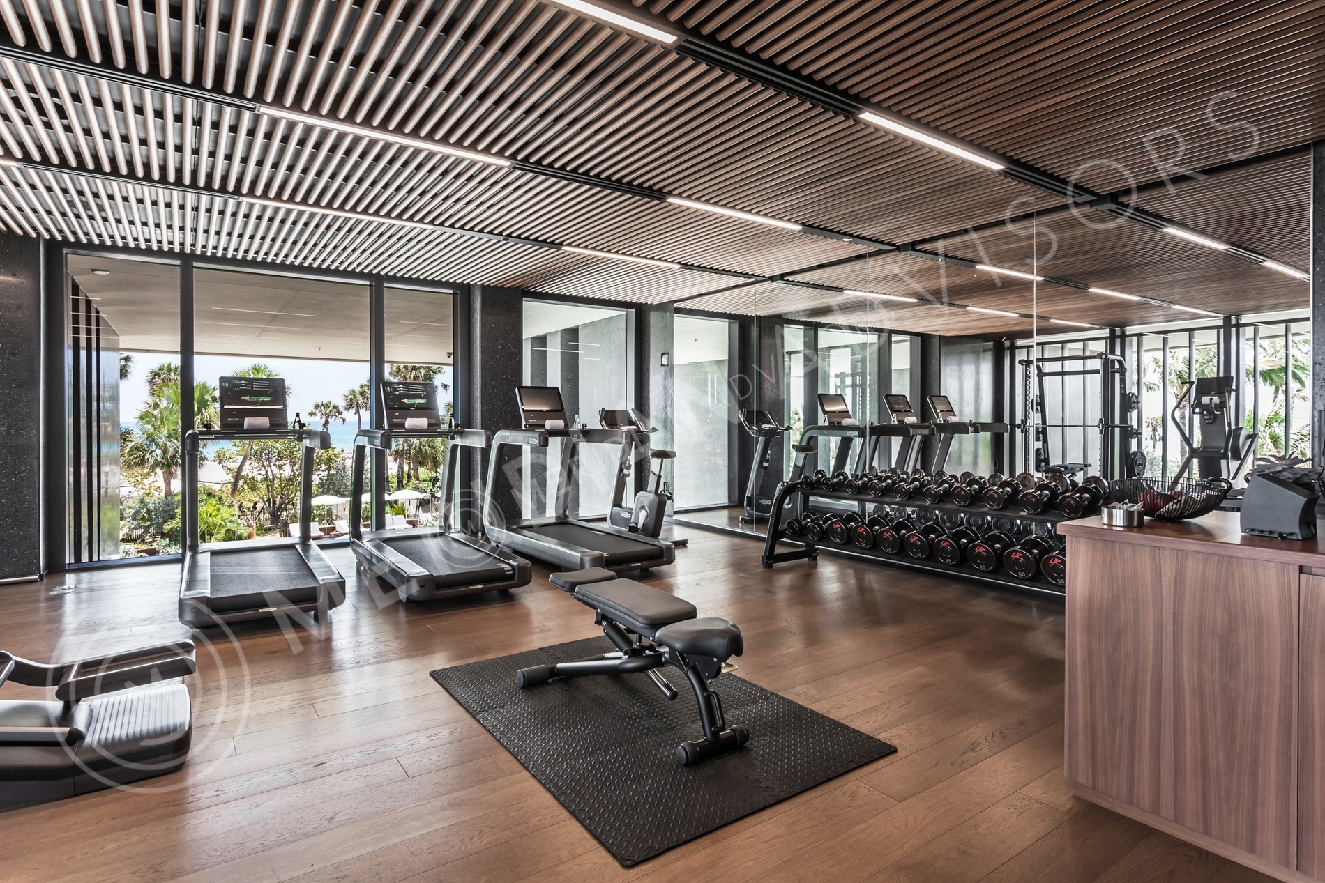 - In-house fitness center with direct ocean views, timber flooring and best-in-class fitness equipment by TechnoGym